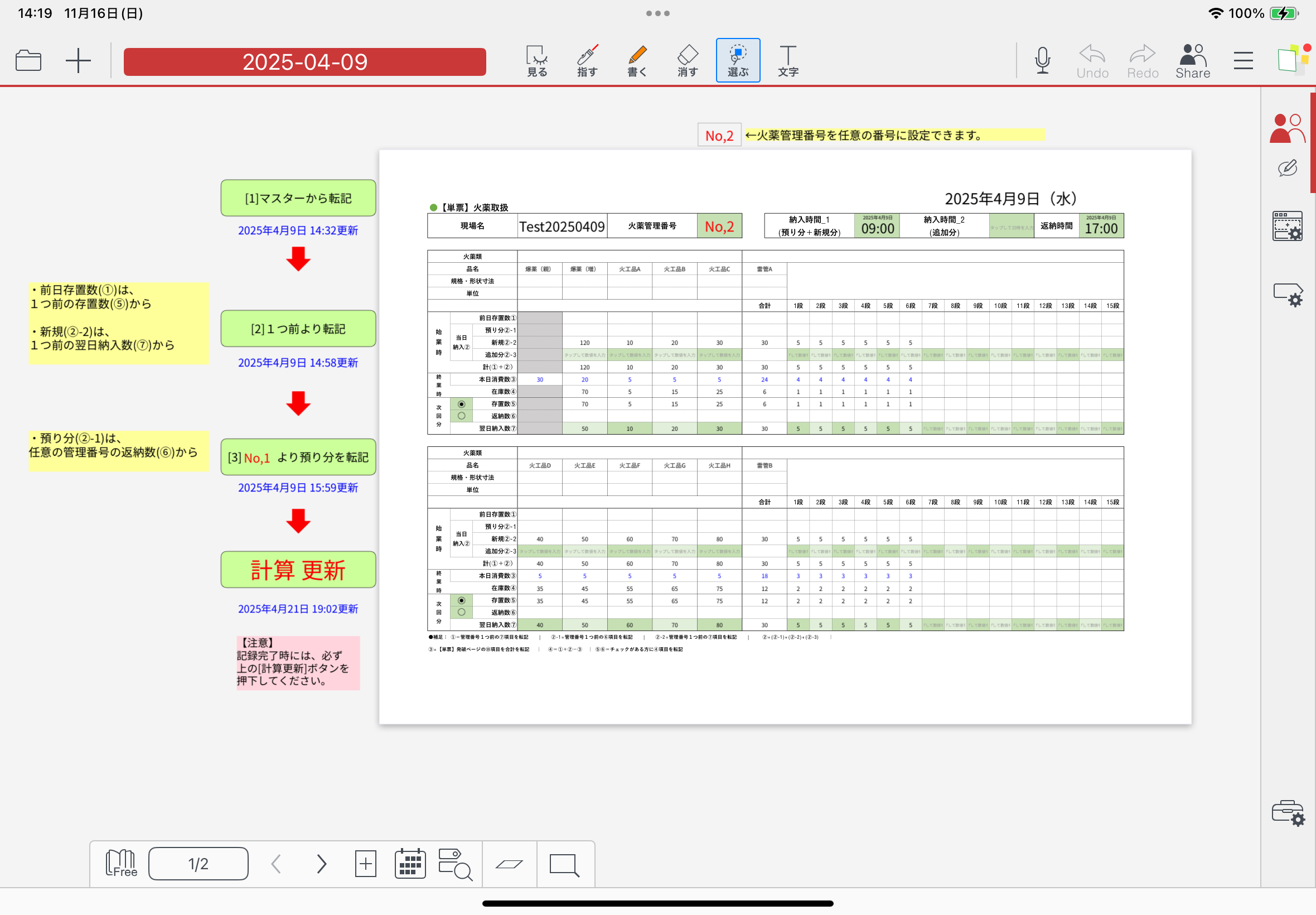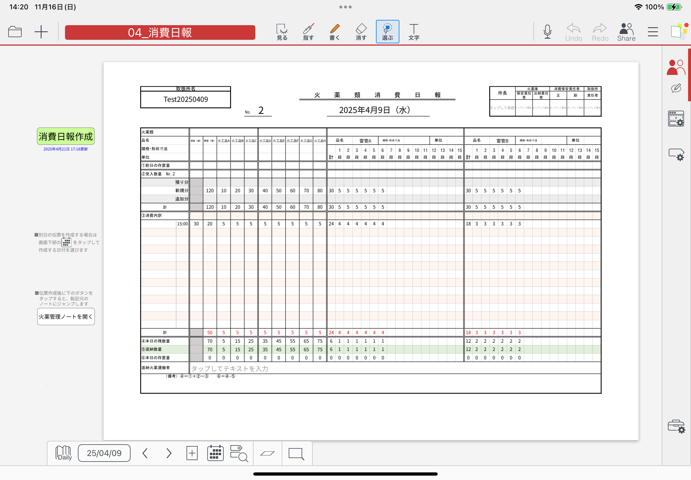多くの現場で使われている一般社団法人日本建設業連合会の「火薬類管理自主基準」に基づいた書式を採用し、従来の紙帳票から違和感なく移行できるようにしました。