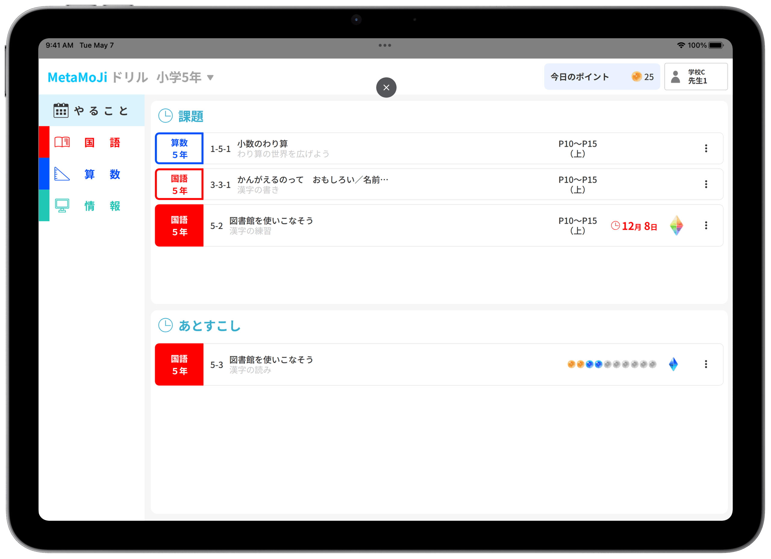 MetaMoJiはこの方針に沿い、リアルタイム学習支援サービス「MetaMoJi ClassRoom 3」にリアルタイムに見守りができる「メタモジドリル」を追加し、ツールやデータを最大限に活用して、学習者一人ひとりに最適な学習環境の提供を目指します。「メタモジドリル」はいつでもどこでもすぐに取り組むことが可能で、やり残しや誤解答を一目で把握できる機能により、児童生徒の学習を強力に支援します。